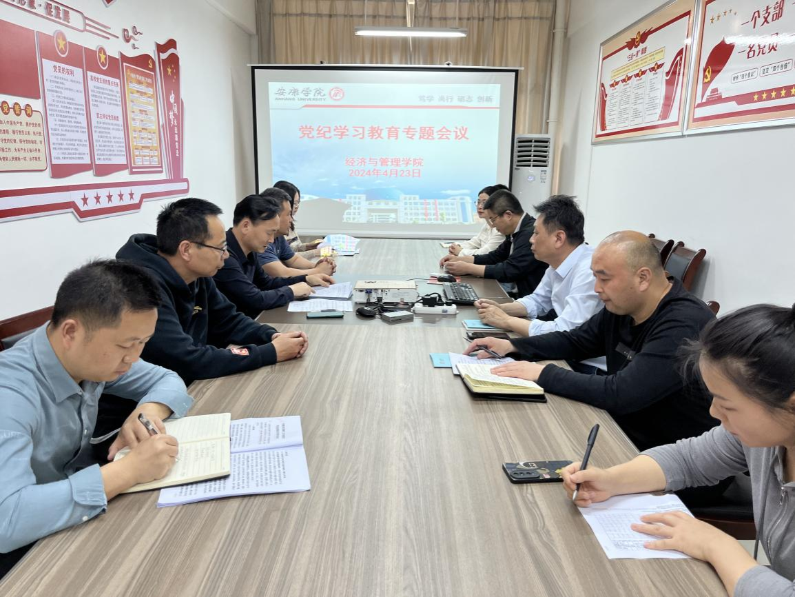 4月24日,best365在逸夫科技楼4003会议室召开党纪学习教育专题会议,会议由党总支书记李成仙主持。