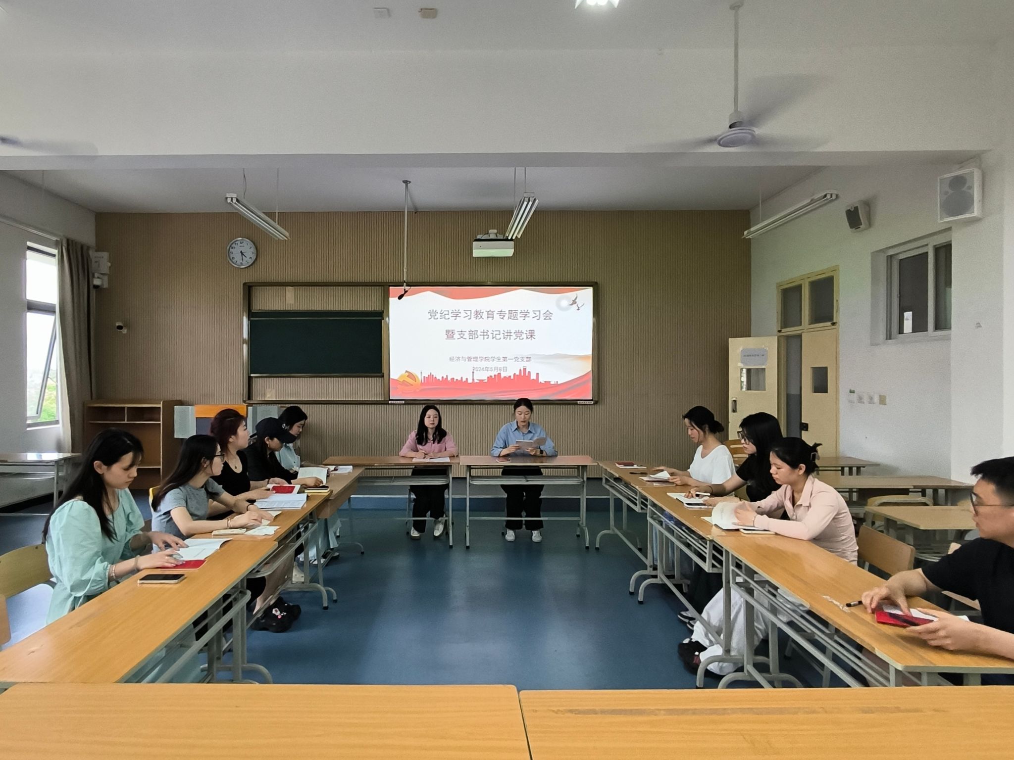 5月8日,best365员工第一党支部在1419教室召开党纪学习教育专题党课暨理论学习会,支部全体党员参加,会议由支部书记唐秋明主持。