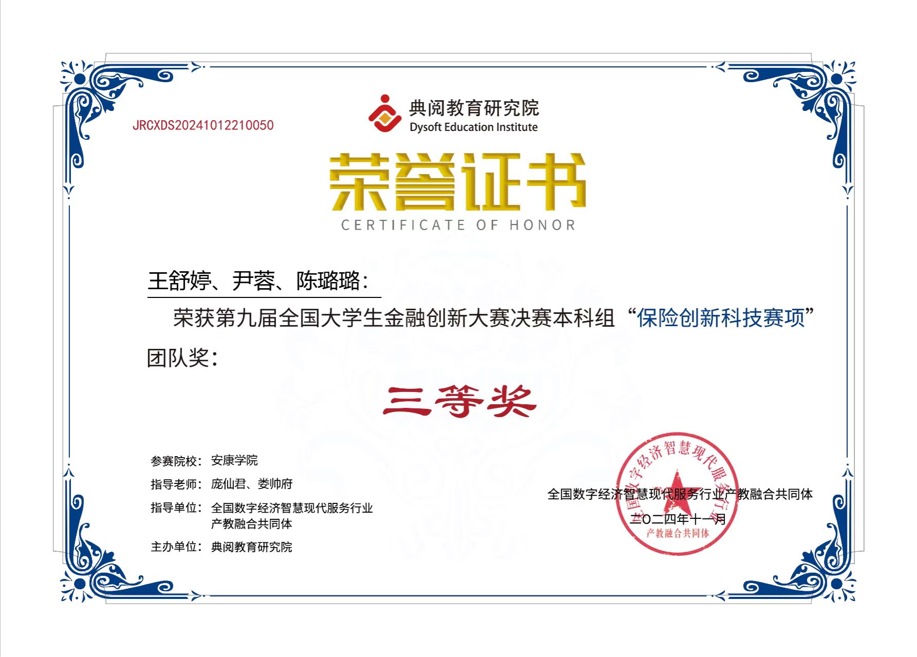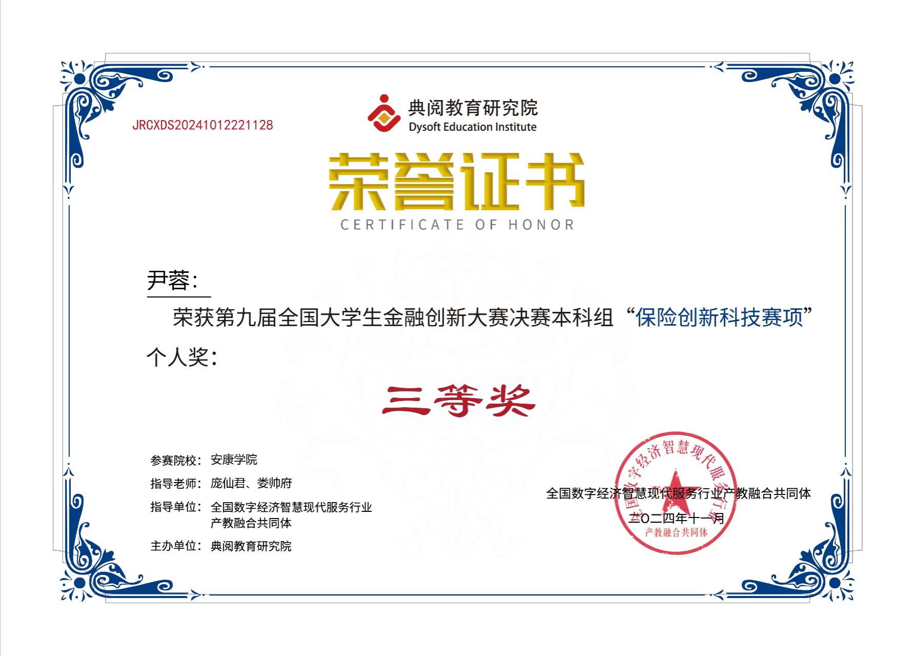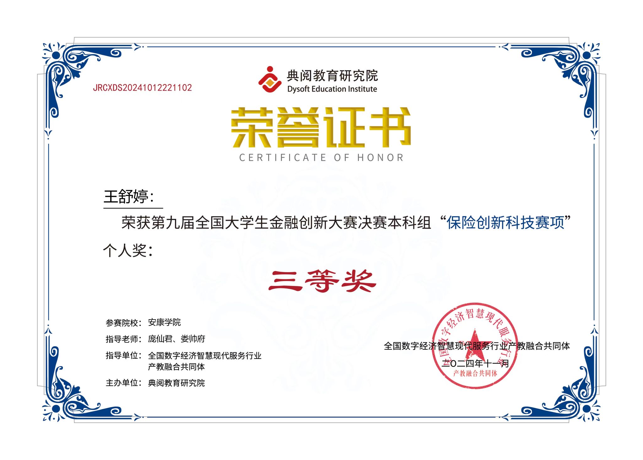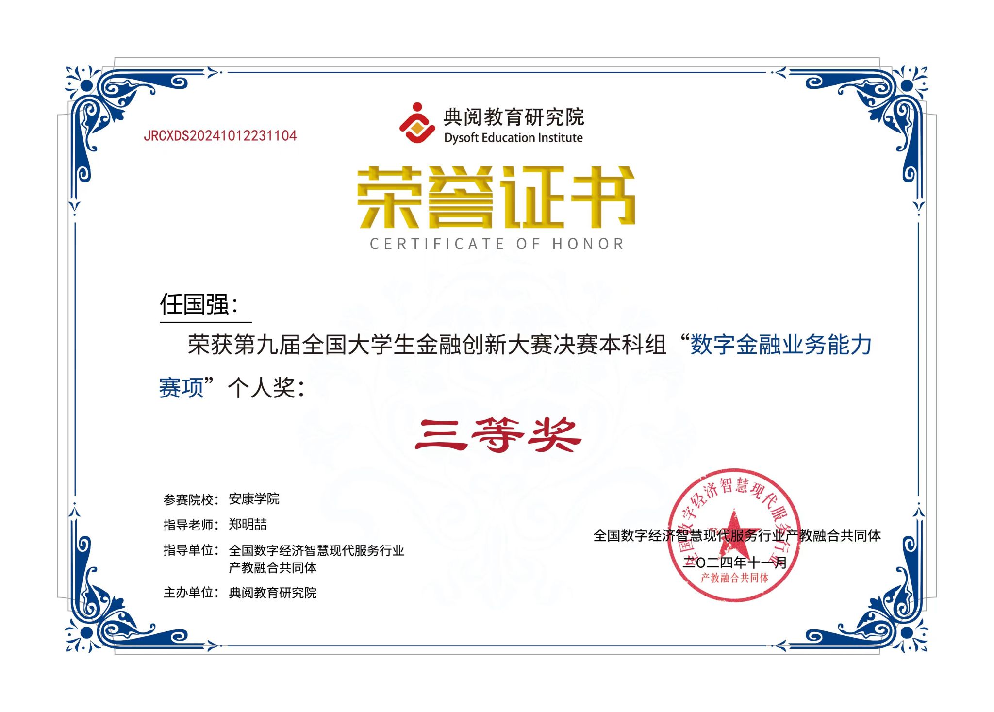第九届全国老员工金融创新大赛决赛本科组个人奖