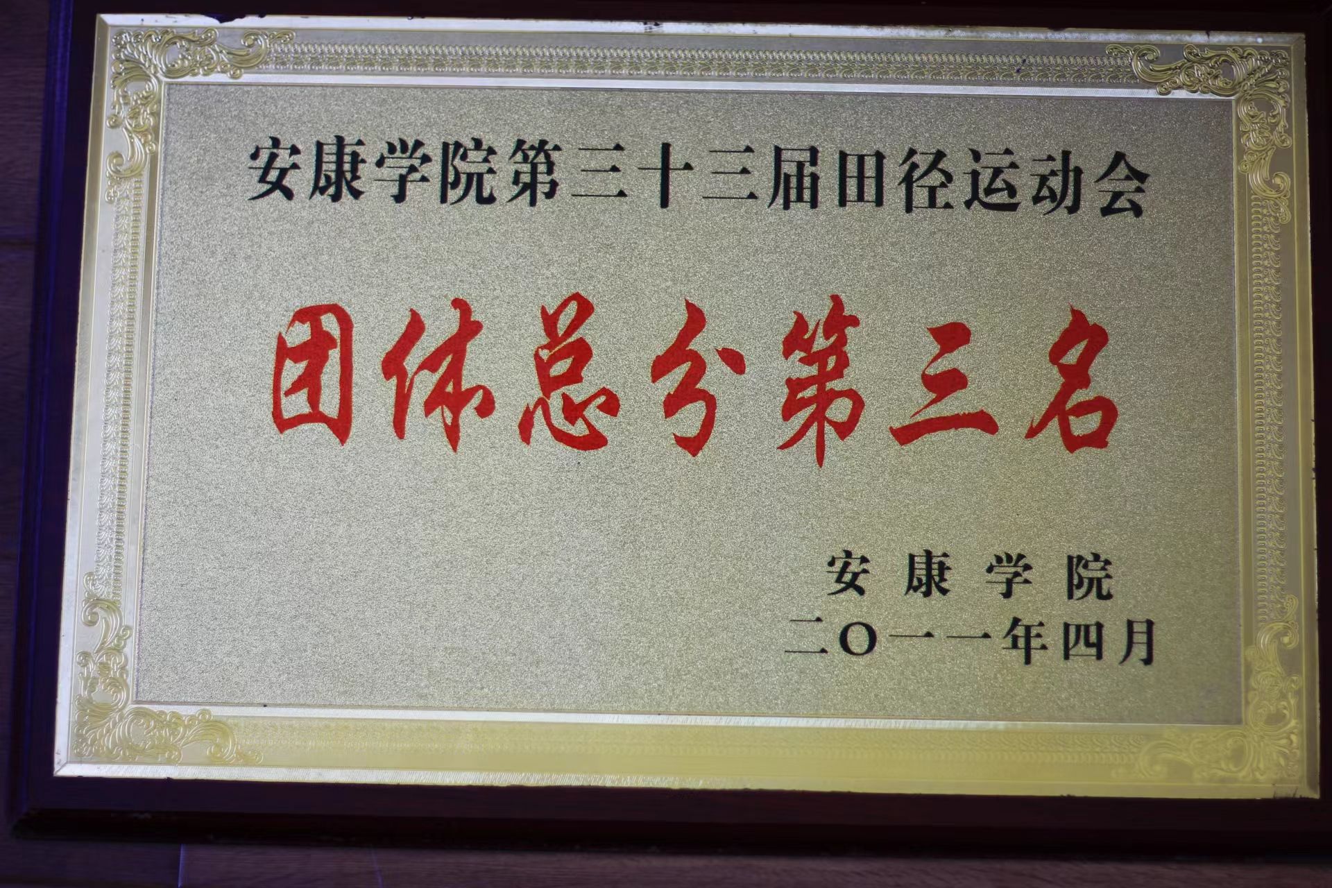 田径运动会团体总分第三名