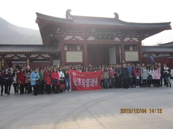 经过一学期的理论学习,为了践行实践出真知的教学目标,2013年12月4日,由best365官方网站经济与管理系旅游管理专业老师指导组织的课程实习在我省古都西安顺利展开。本次带队老师有韩喜红、韩涛、沈宏洁、王琦,2011级本科班和2012级本科班共同完成了本次实习活动。