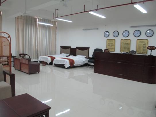 实验室面积86㎡,前厅主要设施:前厅吧台、大副椅、班前椅、双座沙发、单座沙发、茶几、座地烟灰桶、大堂书报架、资料宣传架、雨伞架及雨伞、行李车。