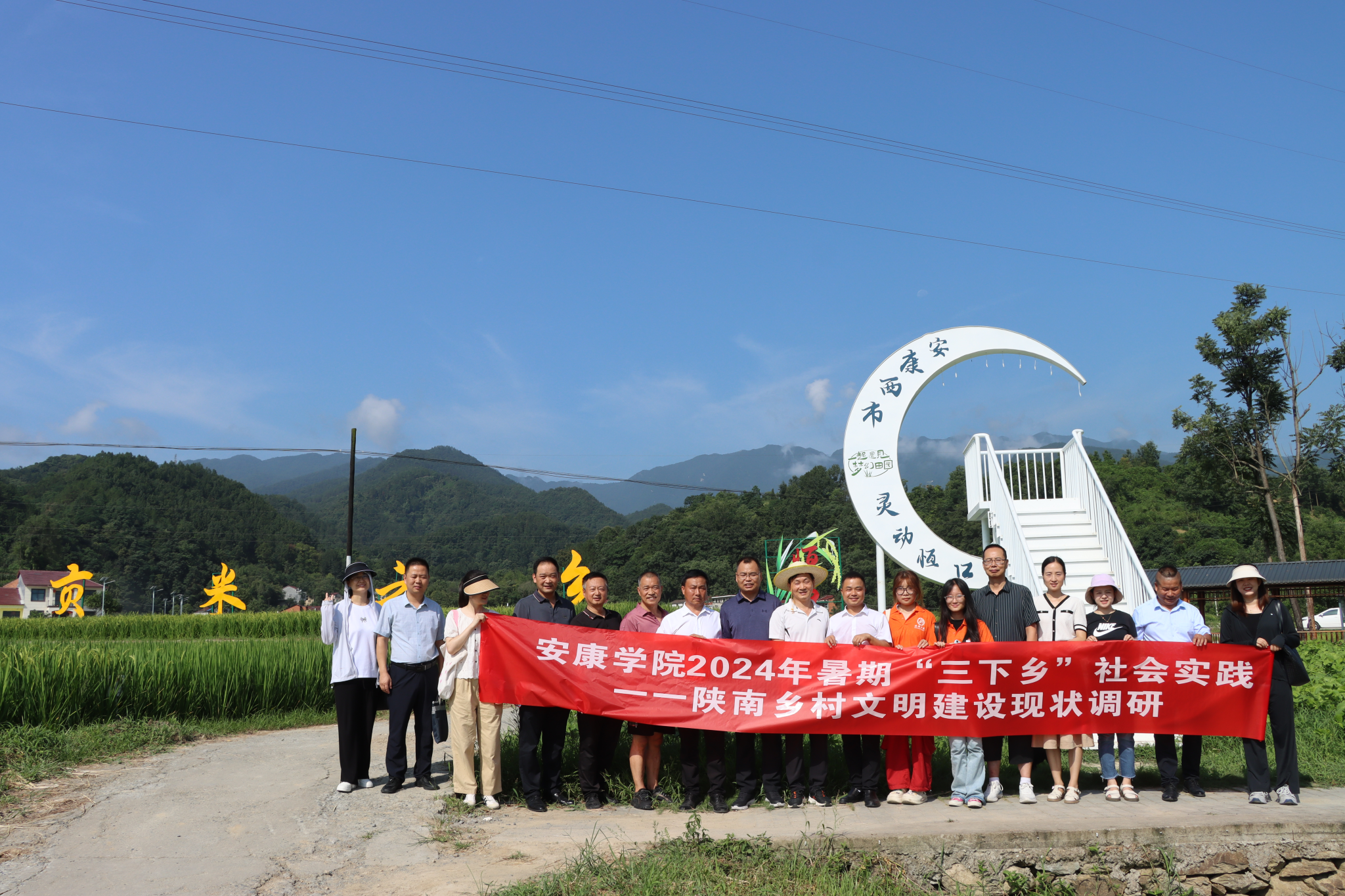 近日,​best365牵头,员工就业指导中心、艺术公司、农生公司联合组成的师生团队,赴恒口示范区袁庄村开展校地合作交流暨暑期“三下乡”陕南乡村文明建设现状调研实践活动。袁庄村党支部书记彭龙定、安康稻梦之光农旅开发有限公司“稻梦时光”研学基地负责人程家琦陪同调研。