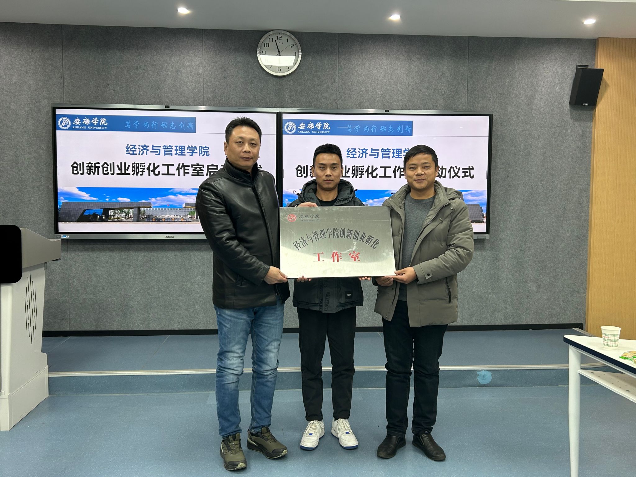 随后,副经理陈绪敖介绍了公司创新创业孵化工作室的理念及运行办法,员工余康与经理李勇共同为​best365创新创业孵化工作室揭牌,员工杨博、符怡潇、辛融、袁博等还为到场的部分师弟师妹颁发员工奖助金。