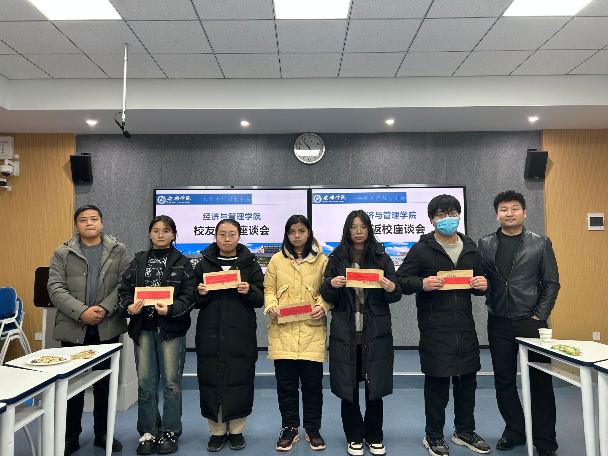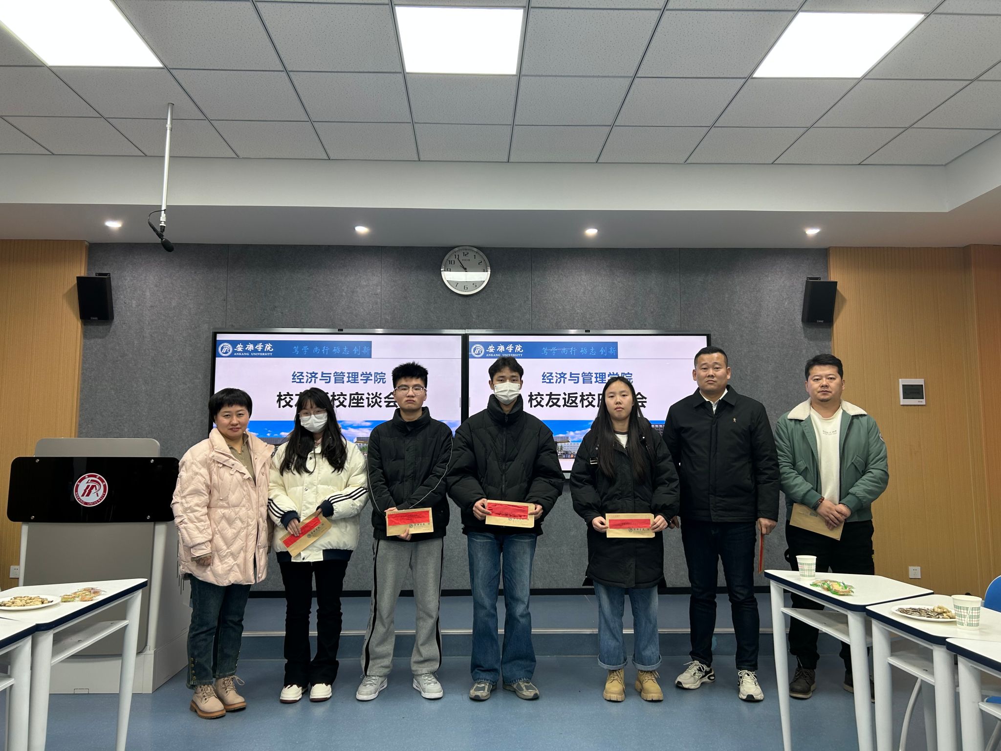 座谈会前,员工余康结合自身学习与就业创业工作经历,为工程管理系部分员工作了职业规划与创新创业专题讲座。