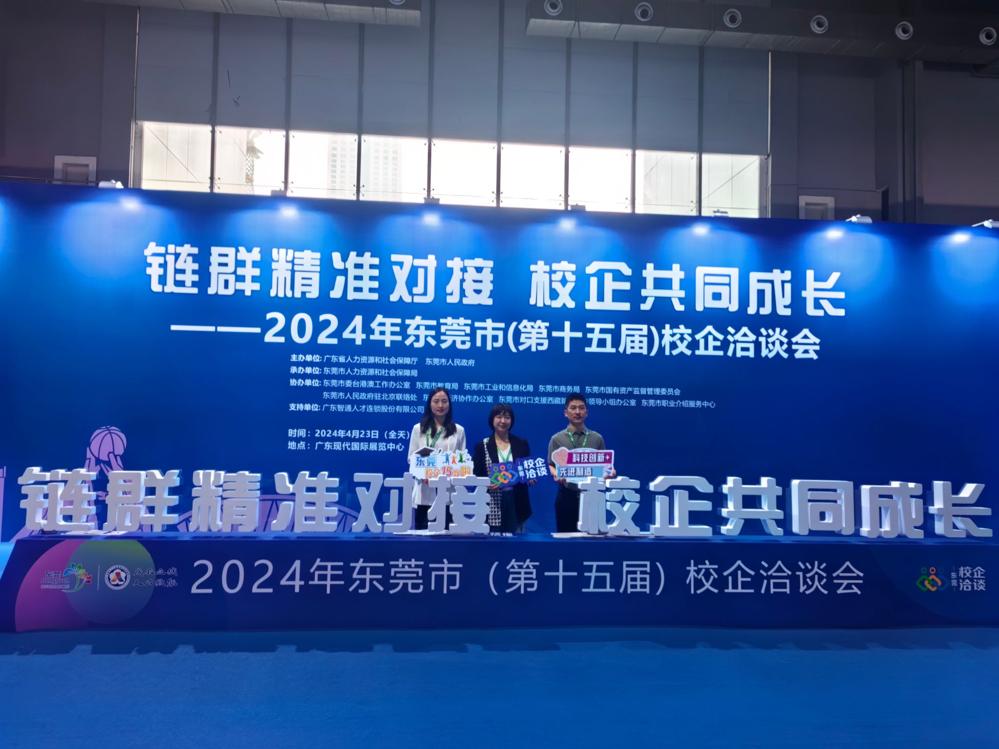 4月23日至24日,在学工部的组织下,公司党总支副书记王瑜与学工部副部长王璐、电信公司党总支副书记蔡正旺等一行共同赴广东省东莞市参加了2024年东莞市(第十五届)校企洽谈会,本届校企洽谈会以“链群精准对接 校企共同成长”为主题,共有259所高校和超过1300家企业出席。