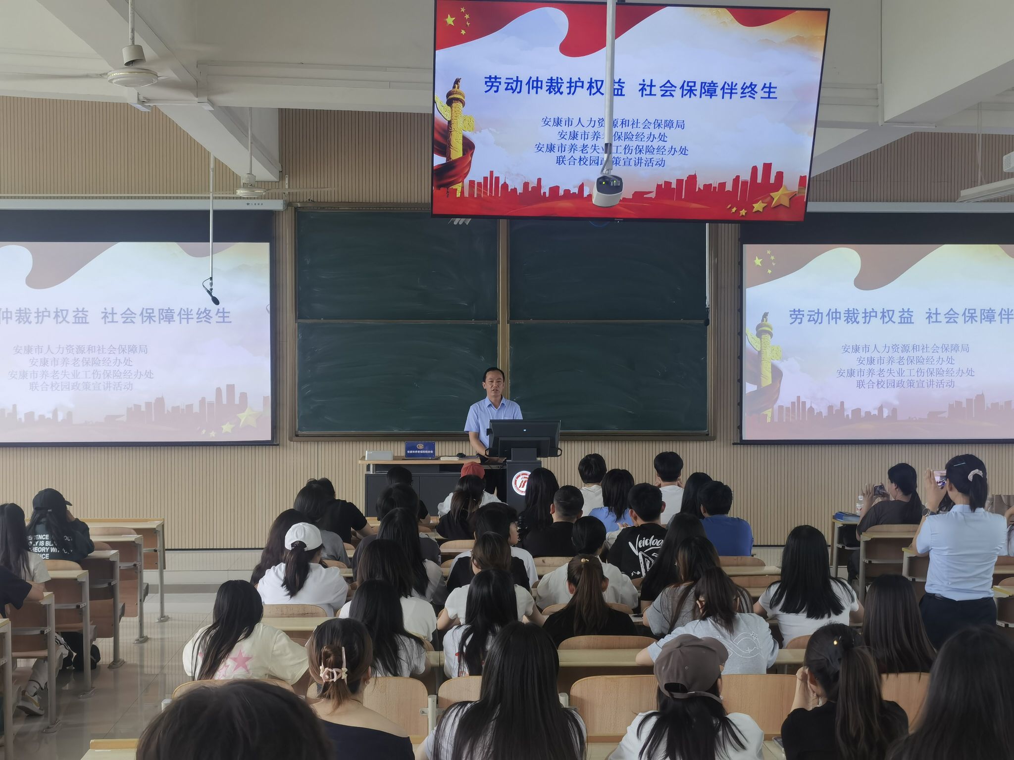 为增强老员工的法律意识和权益保护能力,了解养老保险政策和就业安全知识,618日下午250分,由安康市人力资源和社会保障局、安康市养老保险经办处、安康市养老失业工伤保险经办处联合举办的校园政策宣讲活动在1404教室举行。best365积极分子、发展对象及拟发展的预备党员参与了本次讲座,活动由学工办主任唐秋明主持。
