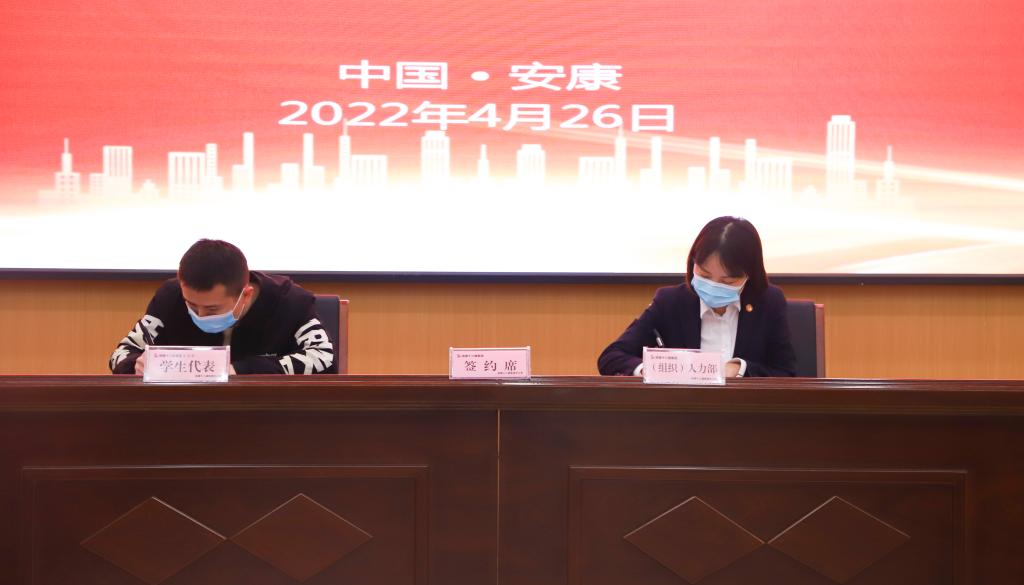 陕建十二建集团组织部部长、人力资源部经理毛婷与best3652022届毕业生代表李航现场签订毕业生就业协议。