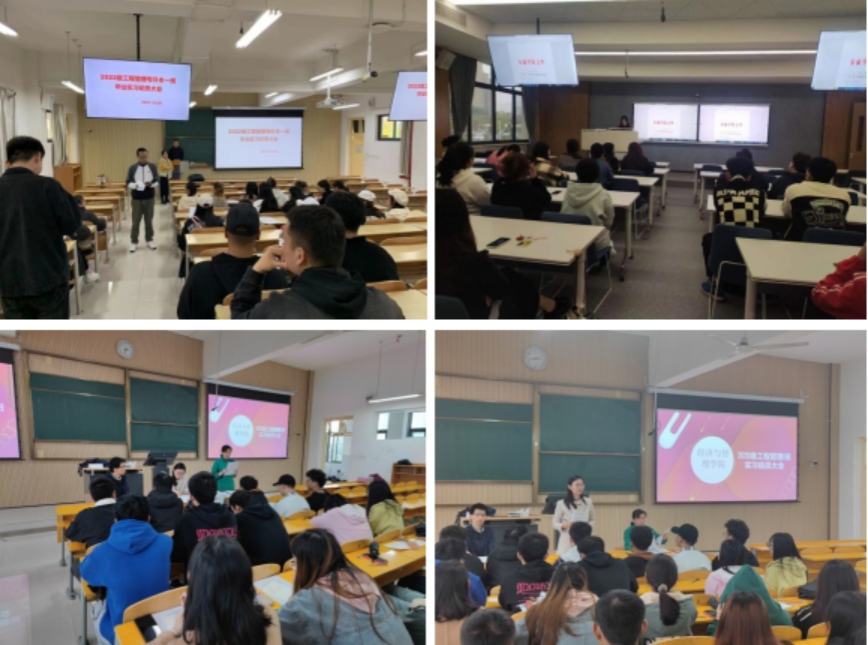 10月18日-20日工程管理系组织召开了工程管理专业实习动员会。为进一步加强和规范员工实习管理工作,切实提高实习质量,按照公司及公司工作安排,本次动员会以班级为单位进行开展。辅导员王远银老师、陈钧莹老师及毕业实习指导老师参加了动员会。