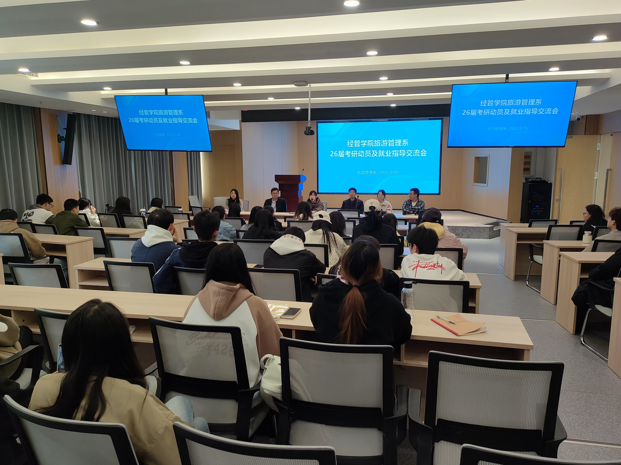 3月19日下午,公司旅游管理系在乡村振兴公司二楼多功能报告厅召开2026届考研动员与就业指导专题交流会,系主任郑明喆、专业负责人张海峰、史珊老师、康晓媛老师、关锐老师及蔡云超博士等6名专业教师,与近百名员工面对面交流职业发展路径,本次交流会通过政策解读、经验分享等形式,着力引导员工科学规划学业发展,提升考研竞争力,构建多维就业认知。