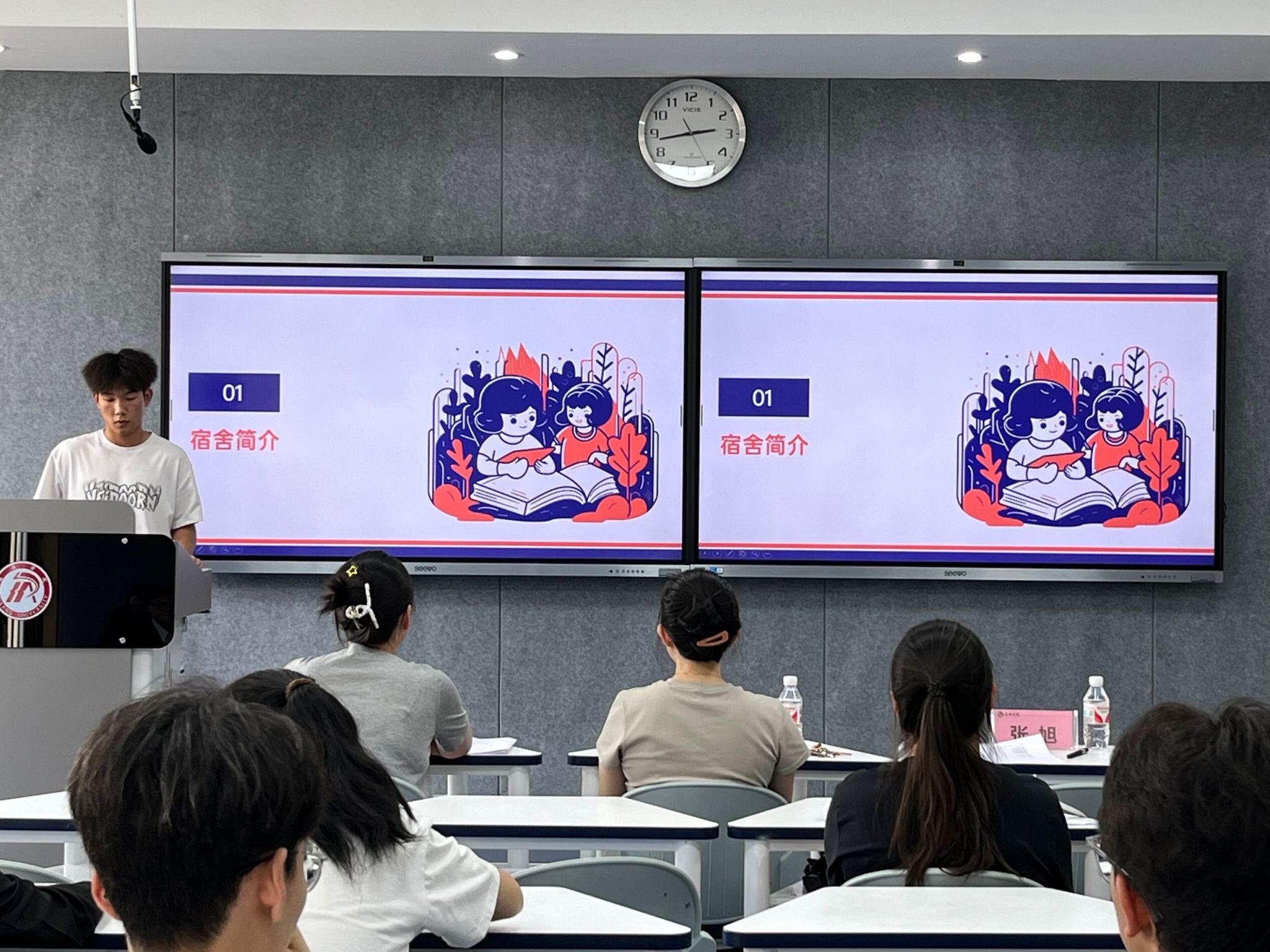 答辩现场,各班级与宿舍代表通过精心制作的PPT,围绕思想建设、学风建设、文化氛围、卫生管理等方面,生动展示集体特色与建设成果。在PPT展示环节,有的班级分享“学霸课堂”互助学习模式,以朋辈力量带动整体进步;有的宿舍展现温馨和谐的生活场景,通过制定个性化公约,营造团结友爱的宿舍氛围。评委提问环节,评委老师结合申报材料与展示内容,就特色活动开展、长效管理机制等方面提出问题,各代表沉着应答,充分体现集体的凝聚力与创新力。