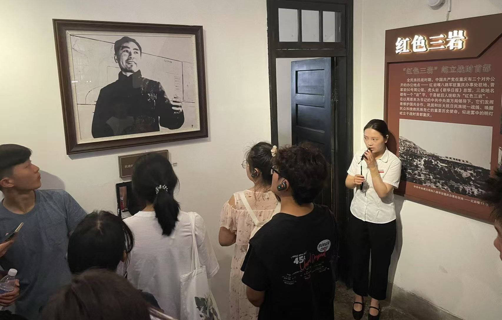 7月1日,团队先后走访了曾家岩50号周公馆和重庆三峡博物馆两处重要文化场所。在周公馆这一见证中国共产党光辉历程的革命旧址,队员们实地感受了抗战时期中共联络处和省委机关的工作场景。