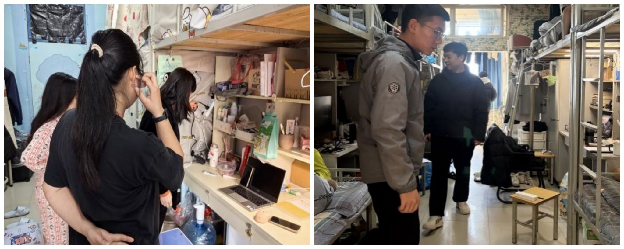 排查中,各辅导员以“全覆盖、无死角、强宣教”为原则,分维度落实排查与引导。安全卫生方面,重点检查违规大功率电器使用、私拉乱接电线等用电隐患,查看内务卫生,对杂物堆积、卫生死角等问题现场督促整改;交通安全方面,向员工强调校园内骑行规范、过马路避让车辆等注意事项,提醒外出遵守交通规则;网络安全与反诈宣传则直击员工日常场景,通过案例讲解网络刷单、虚假中奖、冒充客服等常见诈骗手段,叮嘱员工警惕陌生链接、保护个人信息,遇可疑情况及时联系辅导员。