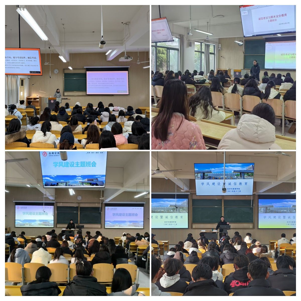 本次主题班会聚焦学风建设与期末诚信考试两大核心,精准发力、靶向施策。班会中,辅导员围绕学风建设,结合班级学情梳理学习现状,明确课堂纪律、考勤管理等要求,引导员工端正学习态度、培养良好学习习惯,鼓励学子互帮互助、勤学善思,形成比学赶超的优良学风;针对期末诚信考试,通过解读考试纪律、通报违纪案例、学习诚信应考承诺书等形式,向员工强调诚信应考的重要意义,警示违纪违规后果,引导大家树立“诚信考试光荣、违纪作弊可耻”的观念,自觉遵守考场规则,以真实成绩检验学习成效。各班还通过互动讨论、签订承诺书、分享学习方法等多样形式,深化主题教育成效,让学风建设入脑,让诚信理念入心。
