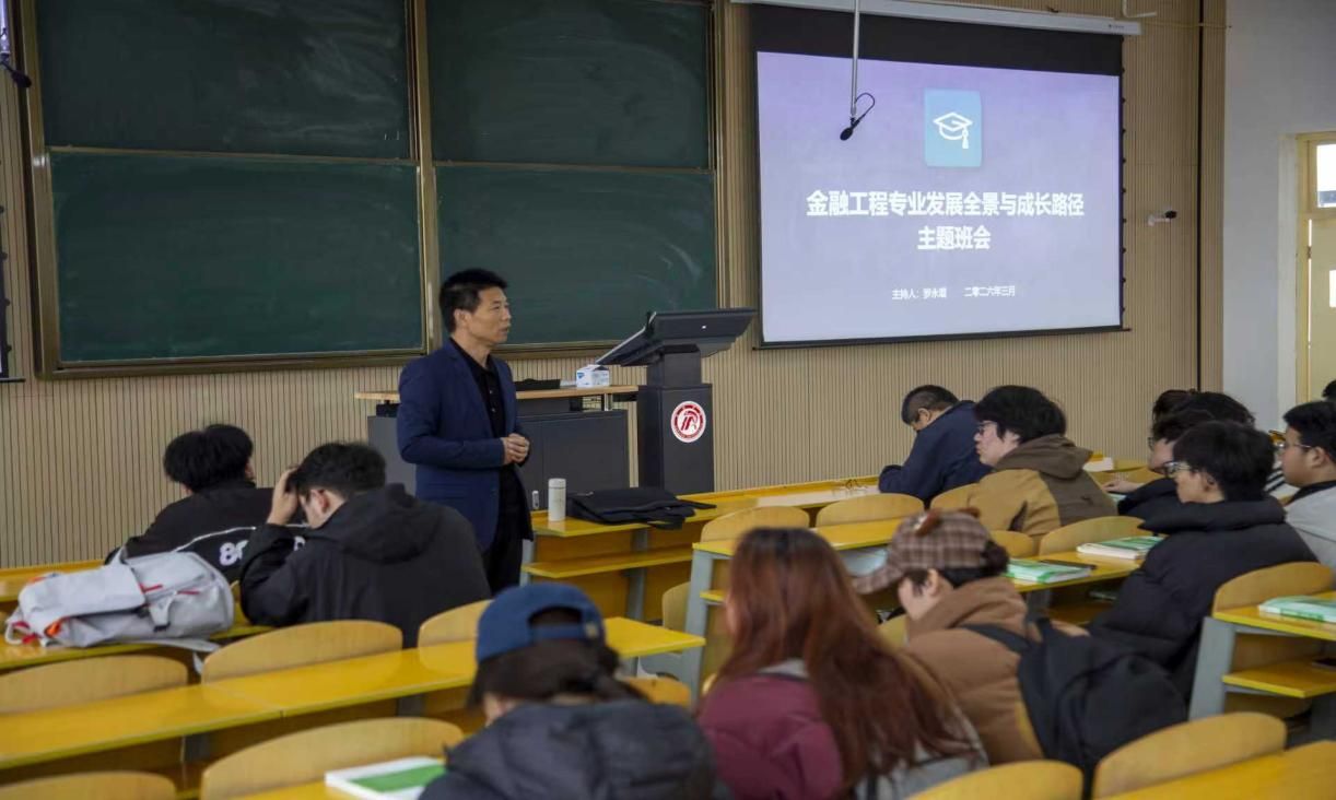 班会伊始,李本庆副教授结合自身教学与行业实践经历,为同学们深入解读金融工程专业的交叉学科特质,明确该专业是融合数学、计算机、金融学的复合型专业,勉励同学们保持学习的好奇心与专注力,扎实筑牢数学建模、编程实践与金融理论三重专业根基。同时,副教授通过往届优秀毕业生的发展案例,为同学们梳理了升学、就业等多元发展方向,提供了极具参考性的学业规划建议。