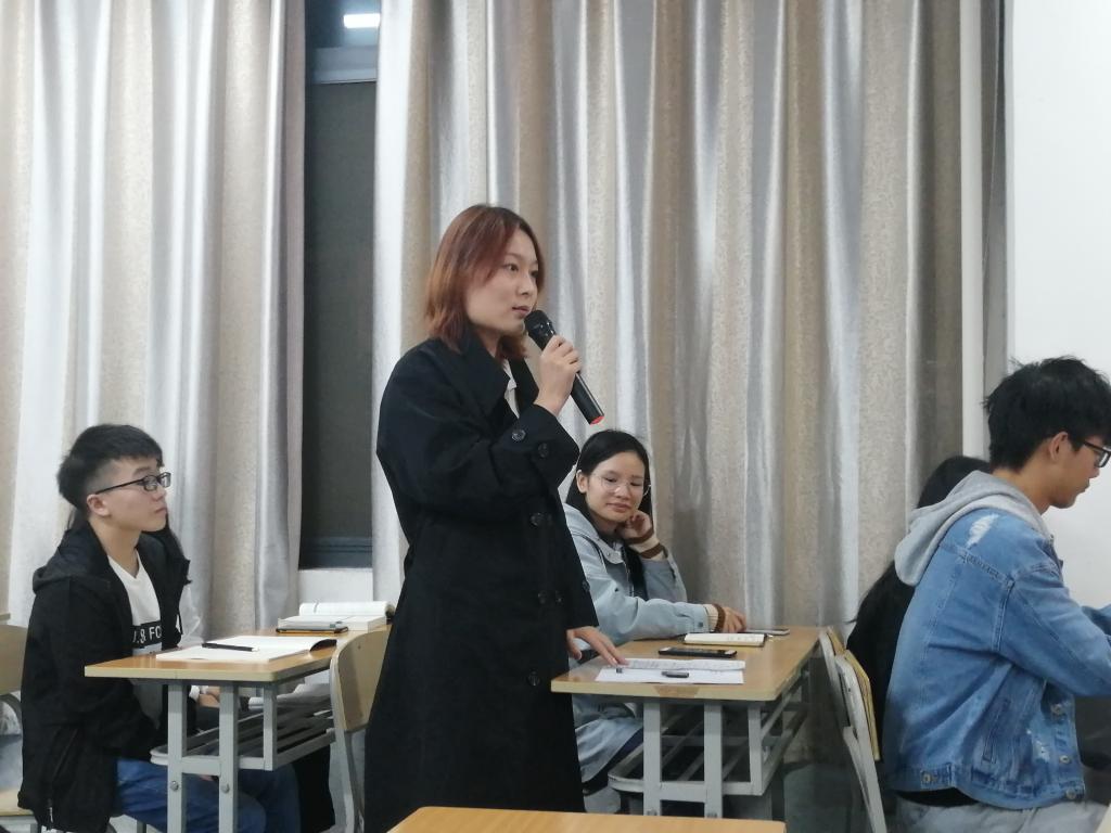 财务管理2017级1班副班长成一璇同学结合自己负责的考勤工作做了经验分享,她主要从做好课堂考勤的意义、如何做好课堂考勤工作和在课堂考勤工作中的思考等方面进行交流分享,为参会的副班长更好开展工作提供参考。