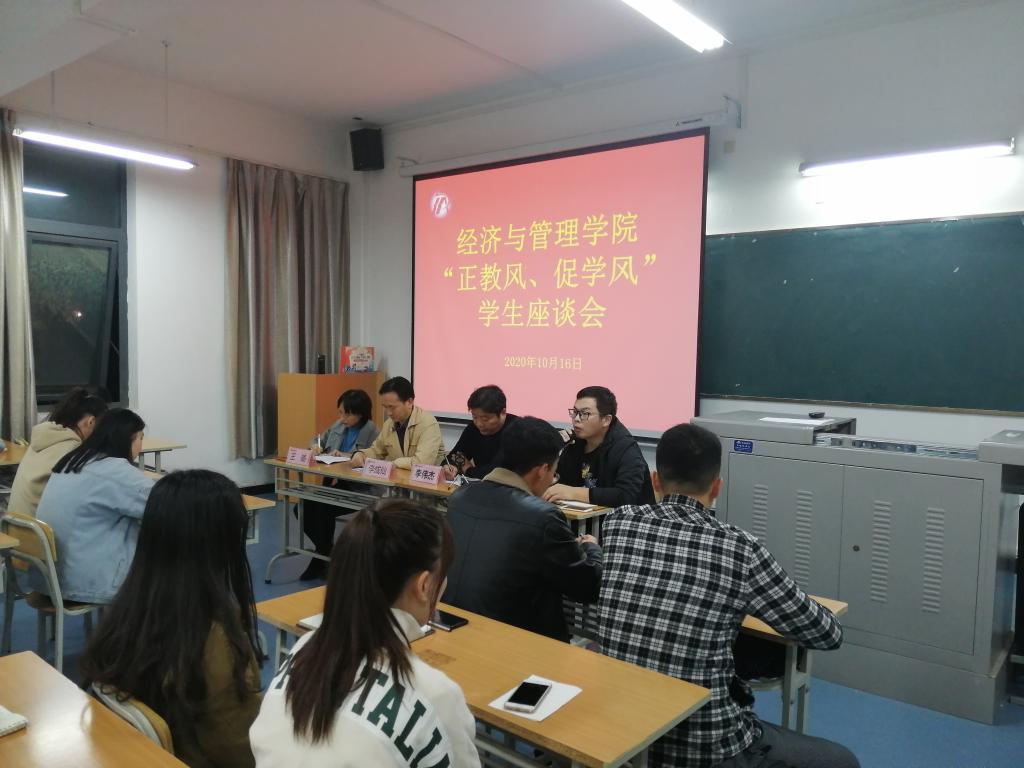 10月16日晚19:00,best365在江北1409教室召开了“正教风、促学风”师生座谈会,公司党总支书记李成仙、副书记王璐、副经理李伟杰、学工办副主任彭超,各班副班长和学习委员参加了座谈会。会议由王璐支持。