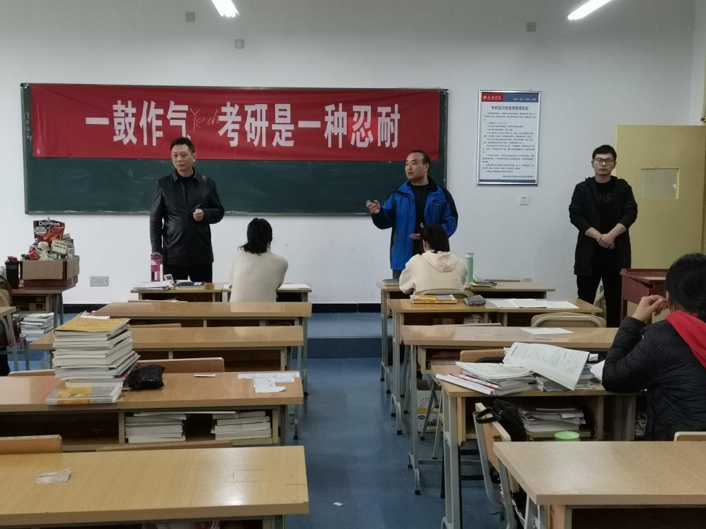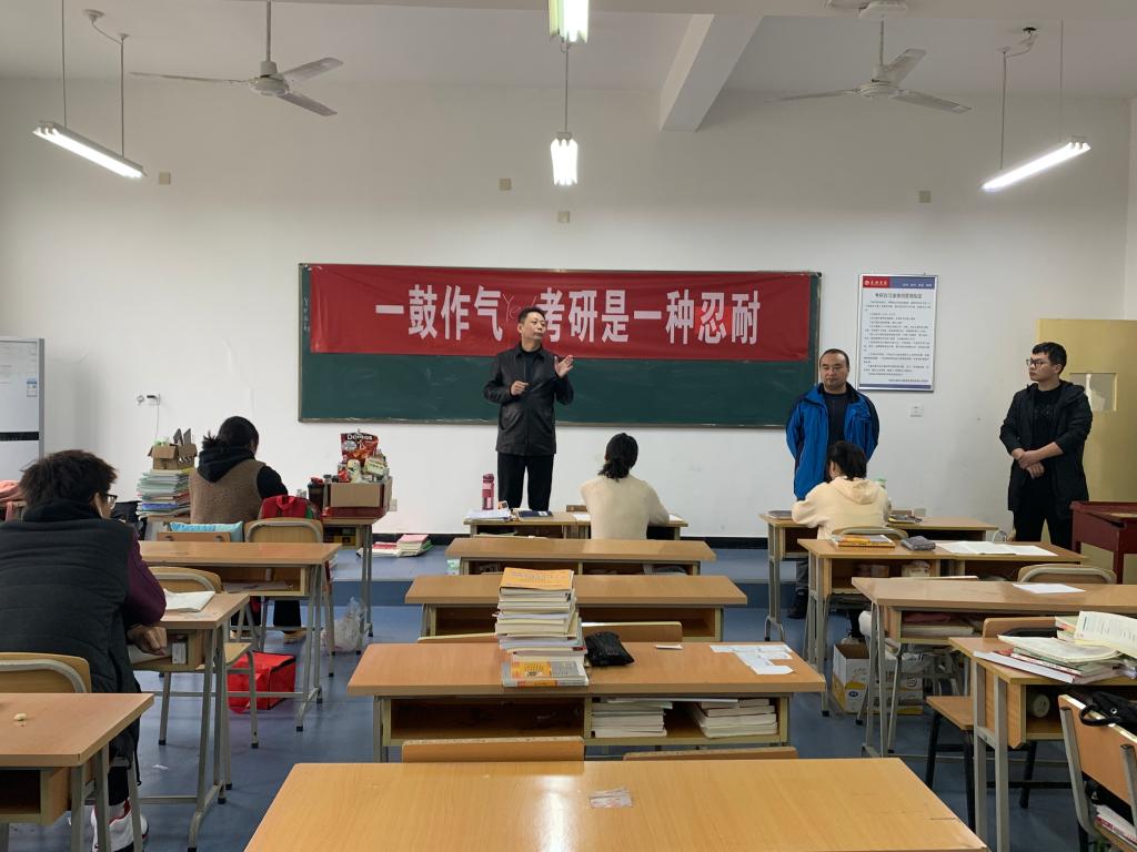 2021年全国硕士研究生招生考试初试倒计时只剩44天,备考学子们都已经进入到了最后的紧张冲刺阶段。为了帮助大家舒缓紧张情绪,科学规划时间,11月12日上午,公司党总支书记李成仙、经理李勇、副经理陈绪敖等班子成员到江北校区1号教学楼1421、1414考研自习室走访慰问了正在紧张备考的经管学子们。