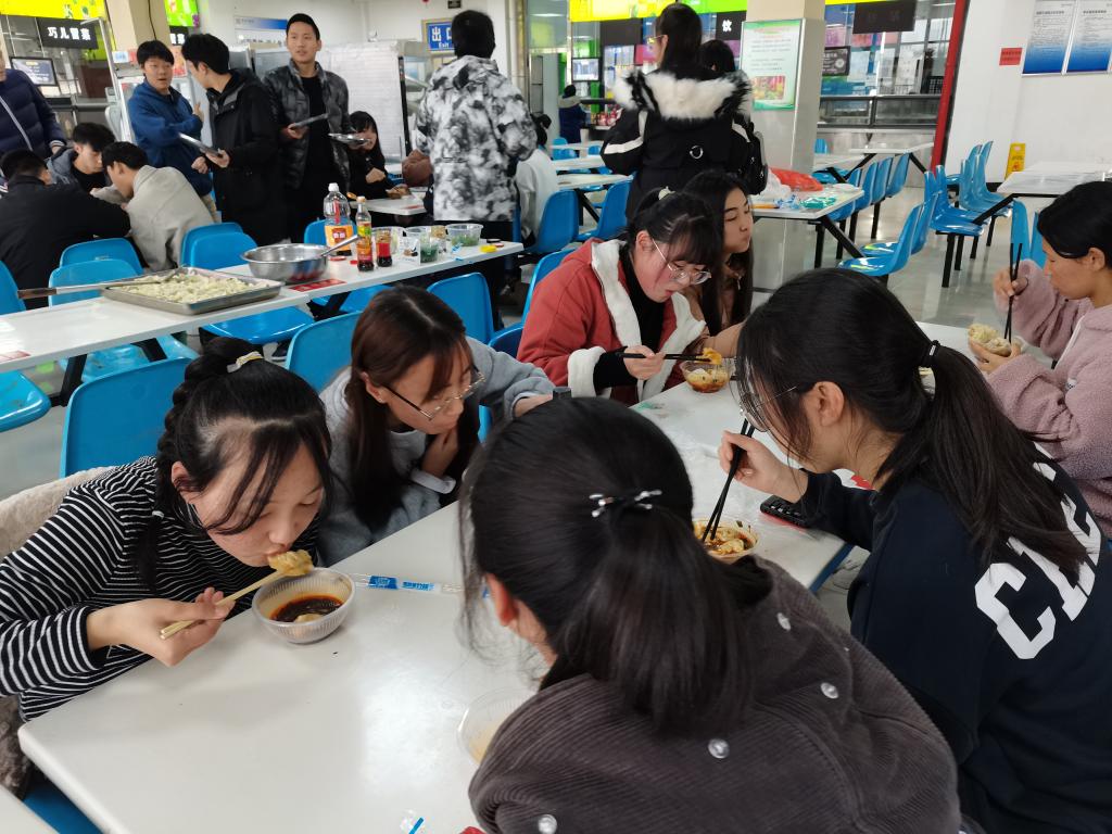 “迎新年,包饺子,个个水饺送祝福;齐聚会,享情谊,会计二班暖我心”。一句话表达了2020级会计学2班全体同学对该班12月24日在江北食堂三楼餐厅举行的包饺子活动的好评!