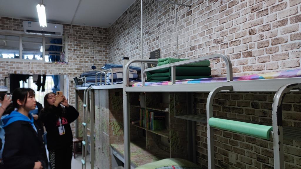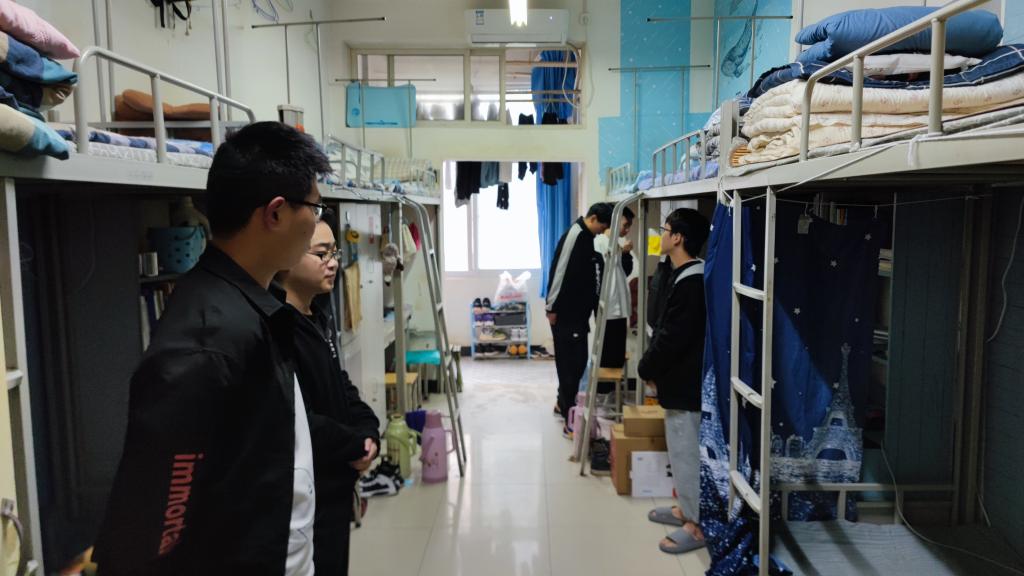 动员大会后,由辅导员老师、“橄榄绿”志愿服务队成员和员工干部组成的检查组在王璐的带领下深入宿舍,参观了“退役军人光荣宿舍”和模范宿舍。并分组对全院217个员工宿舍开展了全面检查,对存在安全隐患和卫生状况较差的宿舍进行了批评并现场整改。