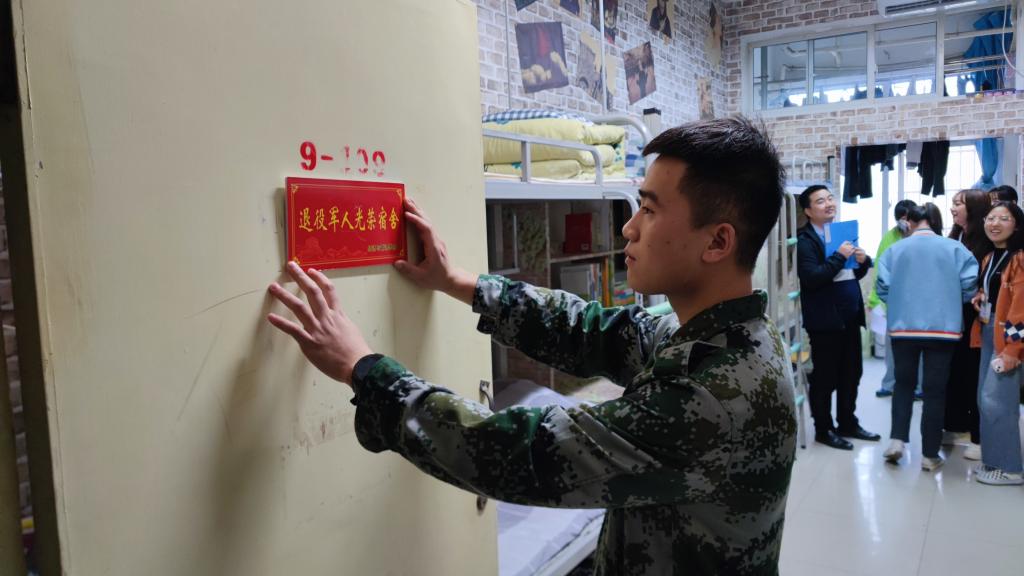 张龄允为十三名退役军人颁发了“退役军人光荣宿舍”牌。