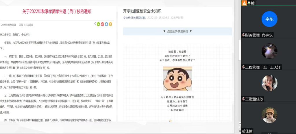 根据《best365官方网站2022年秋季开学员工返校工作方案》《关于做好2022级新生线上入学教育工作的通知》相关要求,为帮助新生尽快适应新环境,树立新的奋斗目标,提高心理素质。9月10日,best365利用腾讯会议召开2022级新生首次线上班会,会议由辅导员老师唐秋明主持。