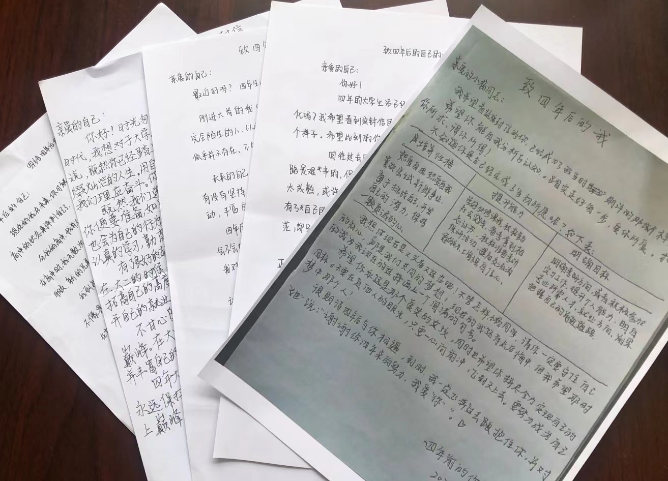 同时,结合本次活动,2022级全体新生通过手写《致四年后的我》的方式,为自己制定了一份职业规划以此激励自己。