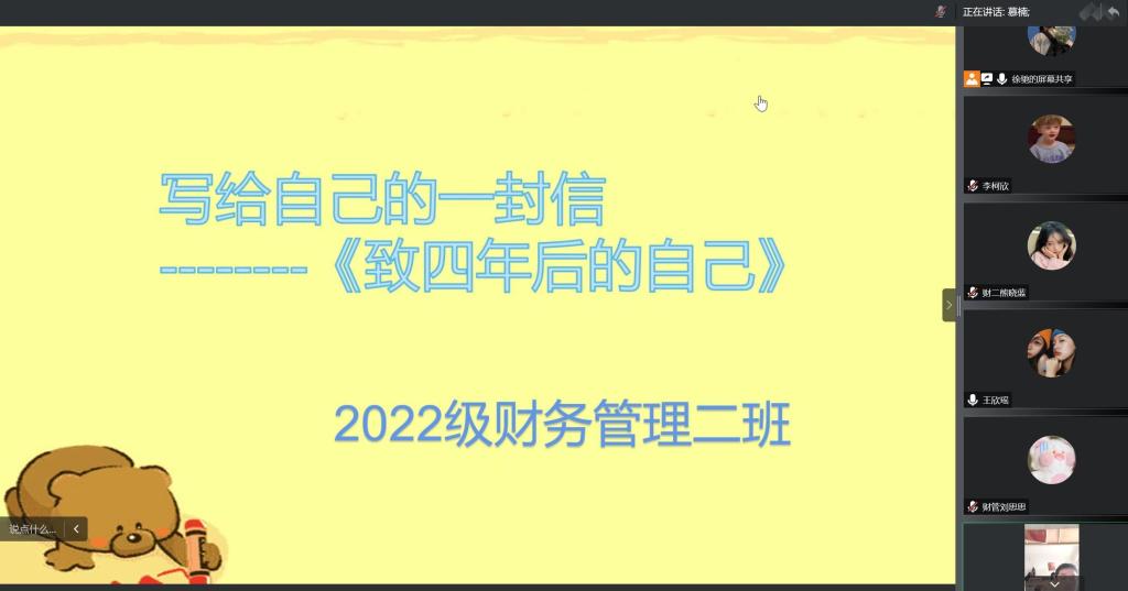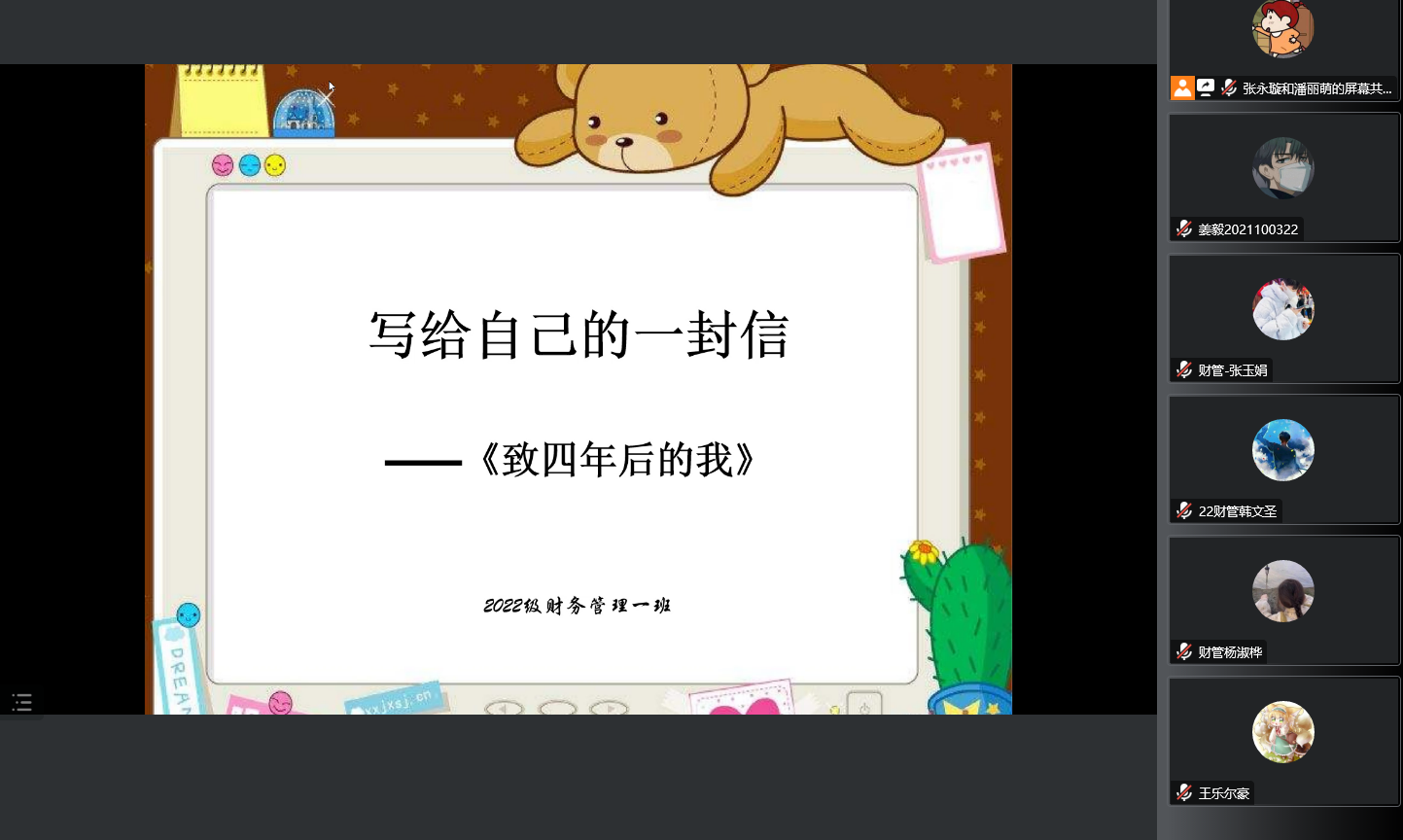 为帮助新生尽早制定职业发展规划,明确奋斗目标。9月26日,best365通过线上网络平台开展了“写给自己一封信--《致四年后的我》”主题活动。活动由辅导员老师唐秋明主持。