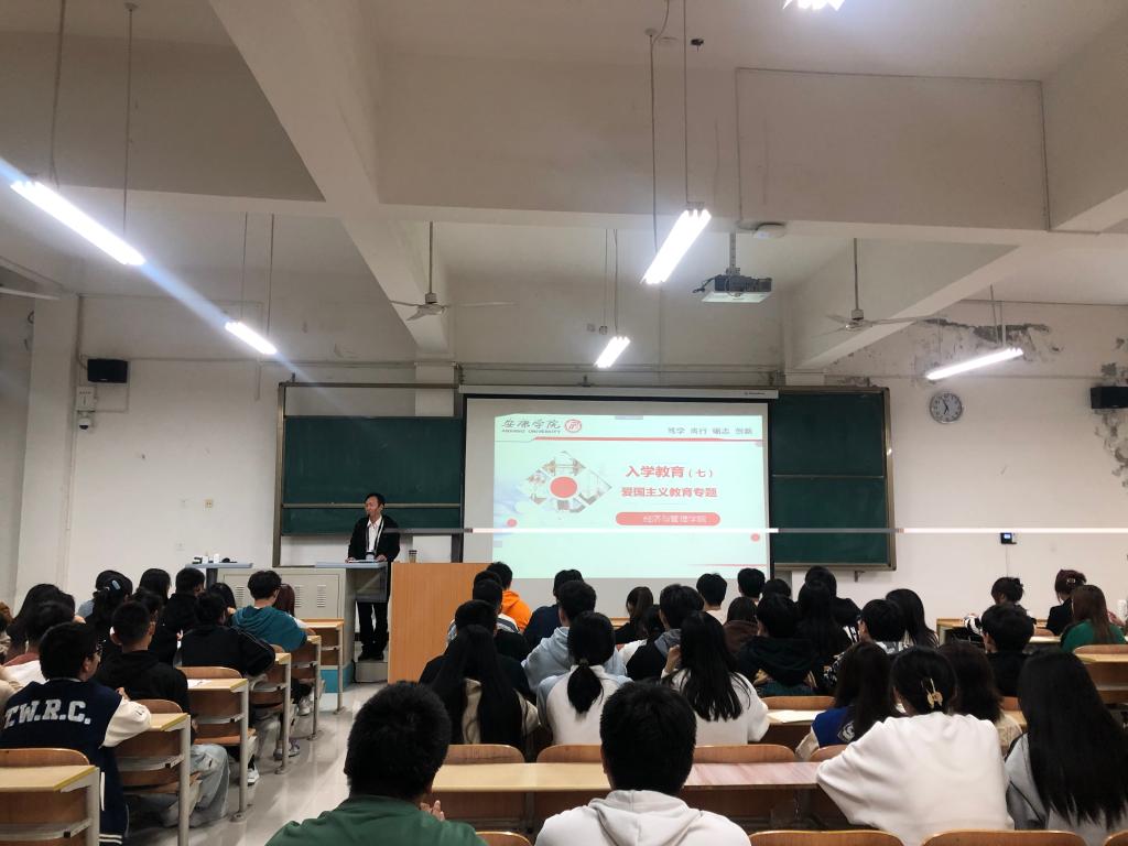 李老师从认识我的大学、融入我的大学、规划我的大学等三个方面进行讲授,运用大量实例,帮助同学们了解专业,认识社会,令大家受益匪浅。同时,还观看了best365官方网站宣传片《我们都是追梦人》,让新生加深了对best365官方网站的了解,增强了爱国爱校情怀。最后,李老师对新生寄予厚望:“希望全体新生将爱国主义情感建立在刻苦钻研专业知识、立志成为国家、社会栋梁之才。”
