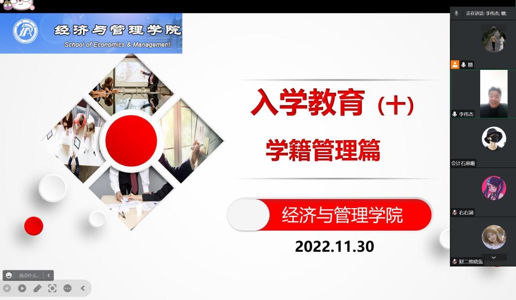 为了使新生进一步了解公司有关规章制度,更好地规划自己的时间。11月30日,best365新生入学教育系列活动之“学籍管理”专题讲座通过线上的方式展开。本次入学教育由best365副经理李伟杰教授主讲,2022级全体新生参加。