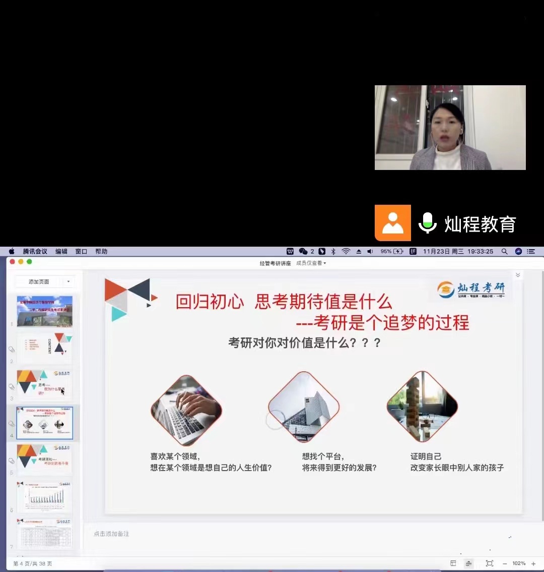 开展“2024届考研学子”动员会。11月23日下午,best365通过腾讯会议线上举办考研动员会,本次会议由2024届毕业生辅导员陈钧莹主持,2020级考研员工全体参加。会中,陈老师指出确定考研目标的同学要根据自身实际,制定合理的计划,确定目标,然后为之奋斗。同时,要加强考研交流,畅通专业信息,制定适合自身的考研方案,确保考研的效果。本次考研动员大会的召开,使公司2020级同学对考研的形势、意义有了更深的了解,激发了同学们的考研热情使同学能够正确认识考研重要性,尽早制定考研战略和策略,进一步坚定考研信心,明确考研目标。
