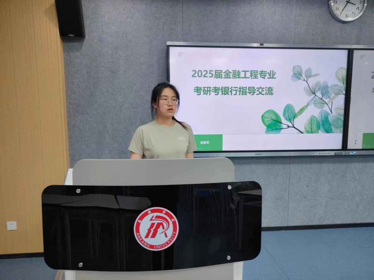 考上银行及信用社的黄琪、邹伊凡、张晨曦三位同学介绍了银行和信用社的招聘流程、时间节点和岗位要求,并从个人信息的准确填写,备考、笔试、面试、主动跟进申请进度等方面进行了分享。最后鼓励拟考银行和信用社的同学要保持积极心态,精心准备可以大大提升自己的竞争力,即使遇到挫折也不要气馁,多尝试不同银行的申请,增加成功的机会。