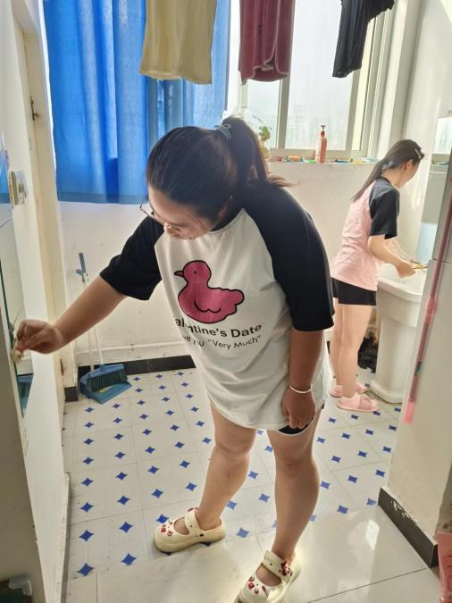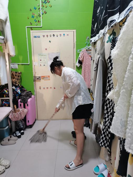 宿舍是员工在公司温馨的家,良好的宿舍环境是员工幸福生活和学习的基础,“一屋不扫何以扫天下”,为培养员工劳动意识和日常生活劳动技能,辅导员周慕涵积极带动员工进行宿舍清扫和文明宿舍建设,同学们认真进行物品摆放,合理规划个人区域,共同维护公共区域卫生,使宿舍常住常净常新。