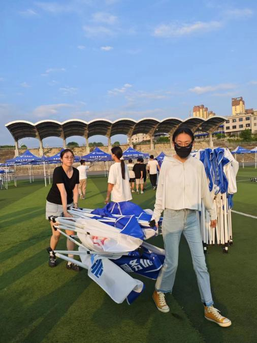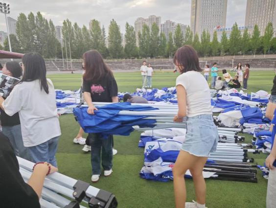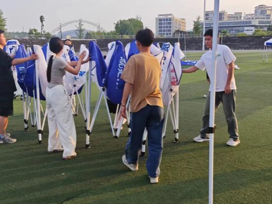 为确保best365官方网站2024届毕业生综合类校园招聘会顺利进行,在辅导员周慕涵老师的组织带领下,同学们顶着炎炎烈日和高温,在操场搭帐篷、摆桌子、贴横幅,大家分工合作、齐心协力,积极参与招聘会的布置,共同为招聘会的顺利召开做出巨大的努力。