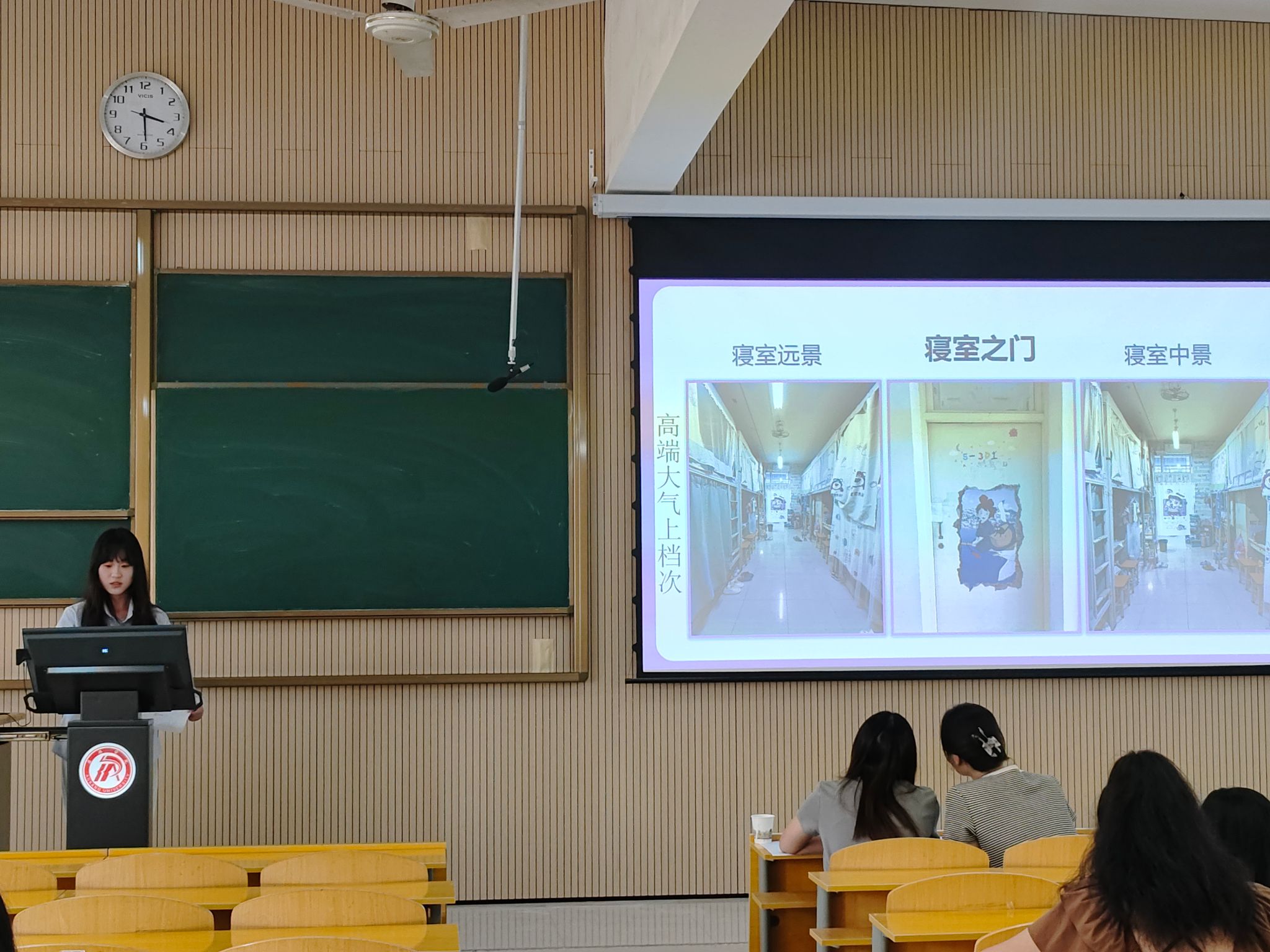 答辩分为集体风采展示、陈述介绍以及评委提问三个环节,各参选代表围绕“创建文明班级和文明宿舍”主题,紧扣班风、学风、课堂、宿舍、校园方面的亮点工作进行陈述,班级答辩人向评委汇报了班级思想政治教育、班团组织建设、班风建设等情况,宿舍答辩人汇报了宿舍学风、内务卫生、安全纪律及文化建设等情况,同学们以生动形象的PPT和视频展示了互帮互助、团结友爱、携手共进的良好氛围。