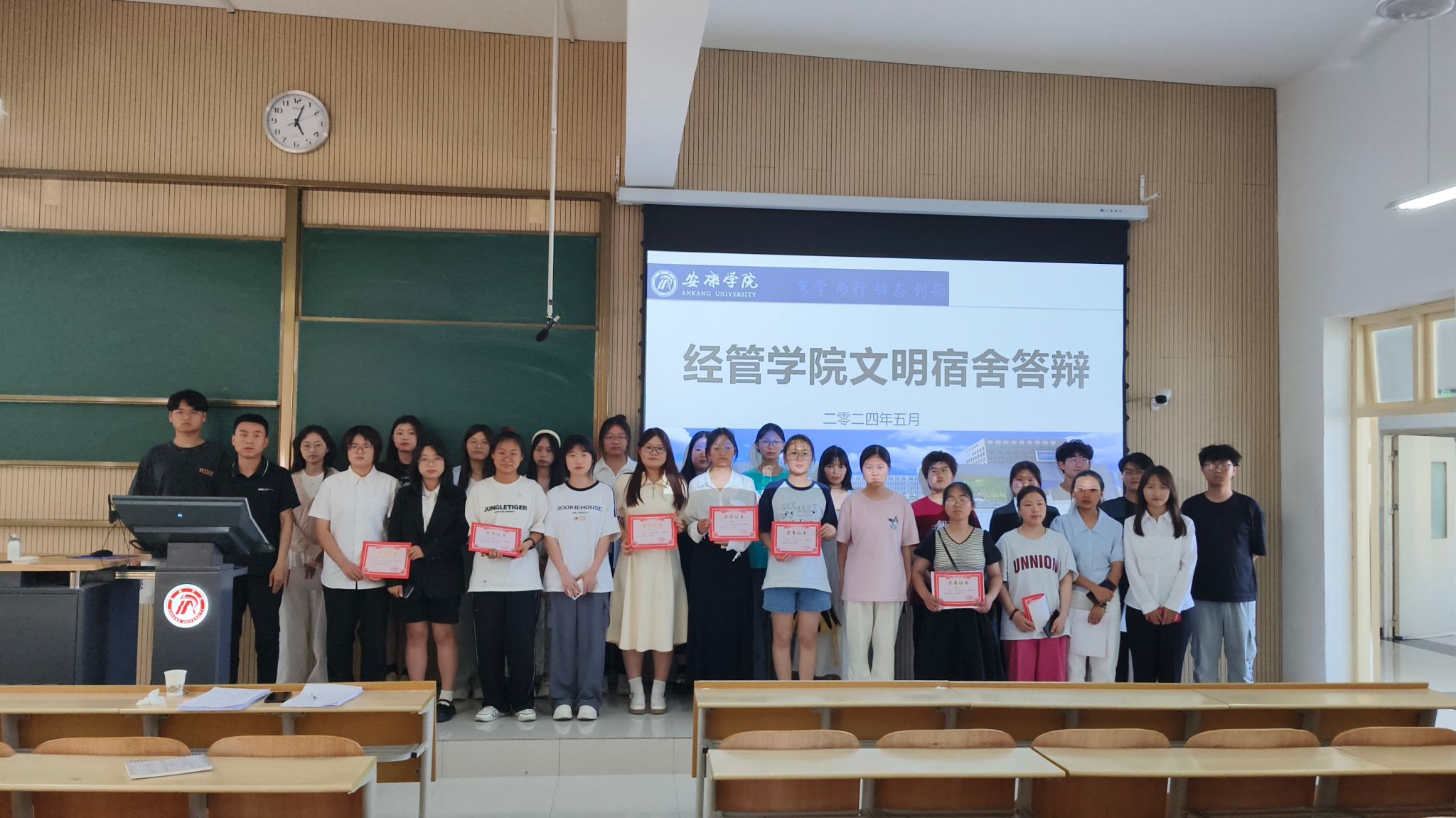 最后,经过评委的评审,2022级会计学2班和2022级工程管理1班被评为院级文明班级,4-512等28个宿舍被评委院级文明宿舍,后期,公司将综合考虑推荐优秀班级和宿舍代表公司参加公司文明宿舍和文明班级的评选。