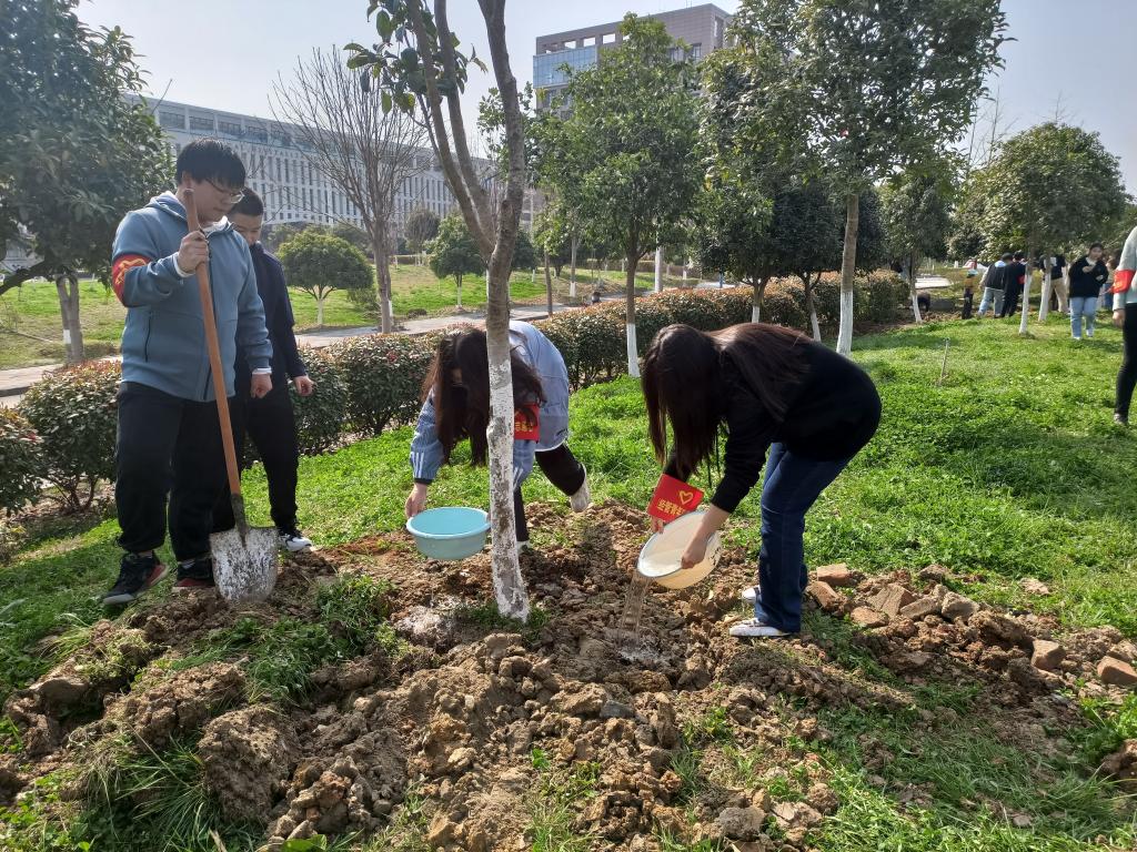 活动中,志愿者们手持工具,在后勤保障处老师的带领下,大家热情高涨,扛着铁铲、端着水盆,开始了植树,挖坑、栽树、培土、浇水,大家不怕脏、不怕累,密切协作,积极配合,每一道工序大家忙而不乱的认真完成,植树现场呈现一片繁忙景象,经过全体师生近2小时的努力,30余株挺拔的桂花树挺立在美丽的校园里。同学们表示,植树节的意义不是在于每个人都要在植树节这天去种一棵树,而是通过植树节的又一次来临,使我们大家更加的关注绿化、环保的问题。