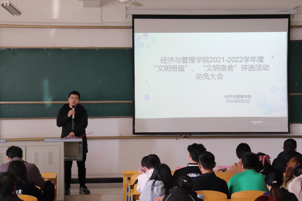 3月2日,best365在江北校区1405教室召开了2021-2022学年文明班级、文明宿舍创建动员大会。公司党总支副书记王璐、学工办副主任彭超、团总支书记王康、辅导员孙悦以及各班主要班干部、各宿舍舍长参加大会,4号宿舍楼楼管张阿姨受邀出席。
