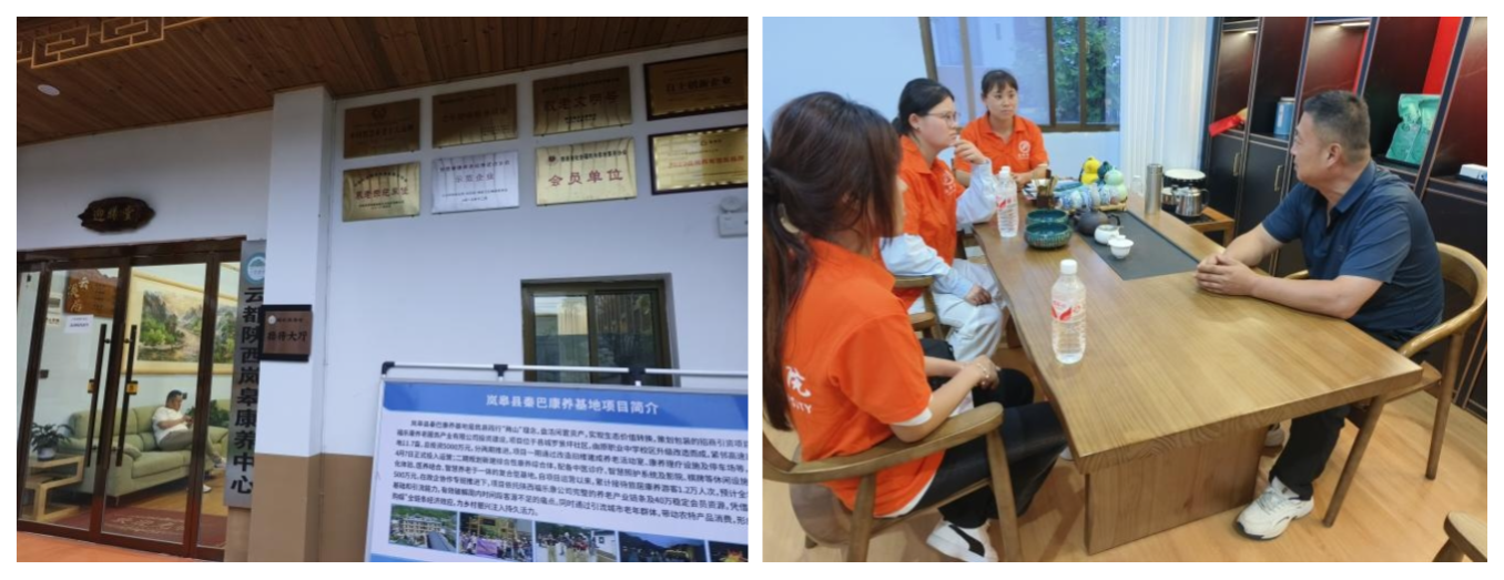在岚皋县秦巴云溪居康养基地,负责人的详细介绍基地发展状况,团队成员参观了康养设施与健康管理项目,并就康养旅游的市场需求、服务模式创新与未来发展规划等问题与基地人员进行了座谈交流。