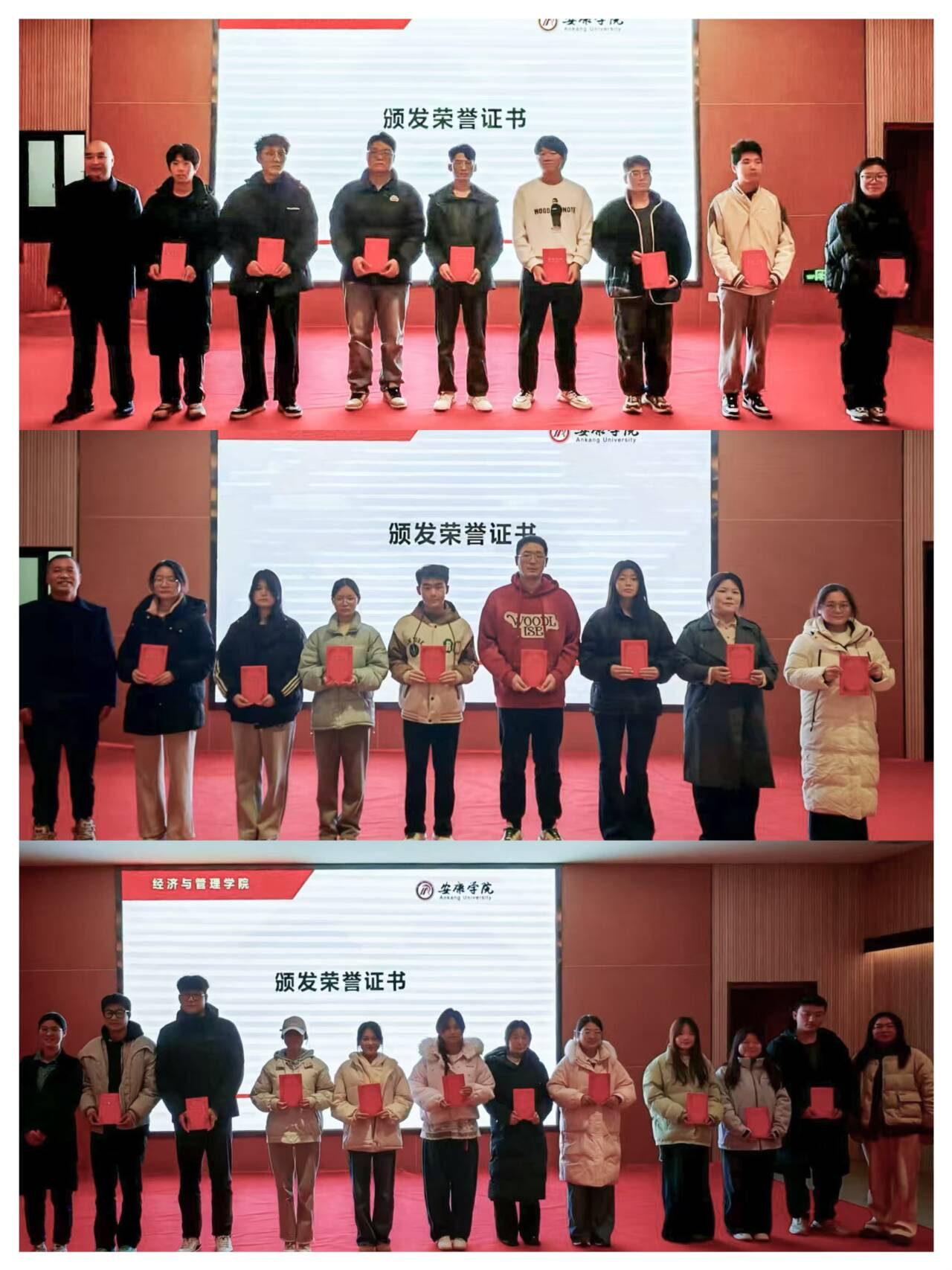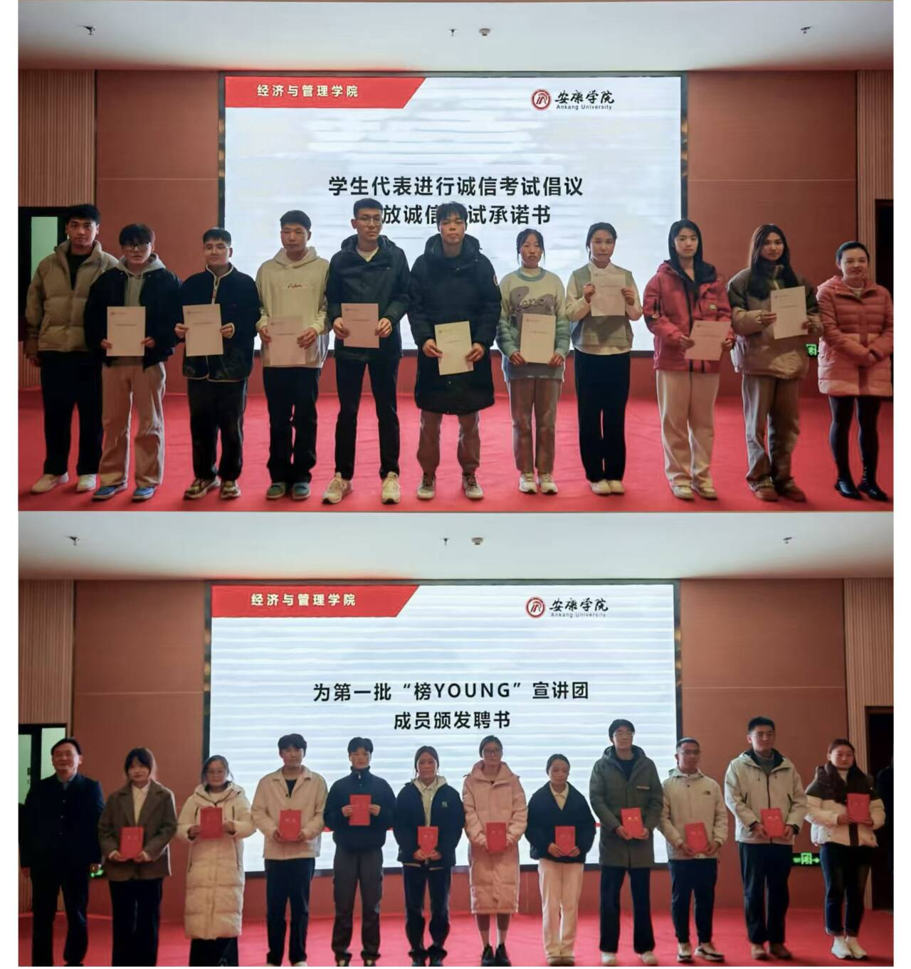 唐秋明宣读了《关于表彰best3652024年度先进个人和先进集体的决定》,与会老师分别为获奖员工颁发荣誉证书。员工代表刘爽进行了诚信考试承诺和倡议,各班班长现场领取了诚信考试承诺书。
