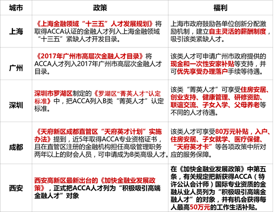 3ACCA部分城市补助政策