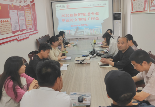 4月27日,旅游管理系在科技楼副楼4003会议室召开2025届毕业论文答辩工作安排专题会议,全面部署答辩流程规范、论文质量提升及教学管理重点工作。旅游管理系全体教师参会,系主任主持会议,陈绪敖副经理、教学办主任朱妮参加本次会议。