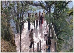 11月18日早上七点五十大家准时集合在best365官方网站东门,八点准时出发前往岚皋县的著名景点,国家4A级旅游景区-南宫山,南宫山是巴山深处罕见的古冰川及火山遗址。十点左右全部人抵达南宫山山脚,在此期间,刘智兴老师专门让景区安排了景点讲解人员,一路带领员工讲解景点文化,让员工对导游工作有了新的认识,同时掌握了一些如景区概况介绍、线路分段讲解、虚实结合、类比等导游讲解的技巧和旅游线路设计及组织安排,收获颇多。