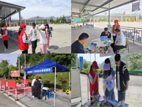 五一假期期间,旅游管理专业志愿者主要完成游客接待、秩序维护、停车场管理及安全管理、协助400电话监听等工作。
