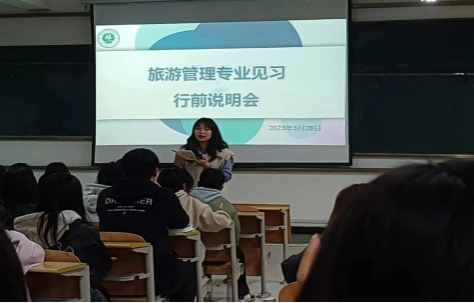 为强化员工理论联系实际,巩固专业发展及就业趋势认知,旅游管理专业2022-2023学年第2学期课程实践活动行前说明会于2023年3月28日在江北1204教室举行,在旅游管理系主任刘智兴老师主持下,相关课程专任教师许浩老师、李娜老师和刘志慧老师与20级旅游管理本科班、21级旅游管理本科1班、2班,22级旅游管理专升本1班、2班共同参加会议。