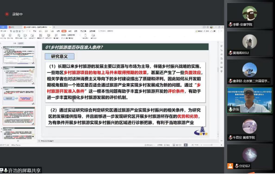 公司教师许浩博士在分论坛2——旅游高质量发展(第二阶段)中做了题为《乡村振兴战略背景下乡村旅游路径研究:准入条件、差异选择及效果评估》的学术报告,该阶段主持人为北京第二外国语大学唐承财教授,点评人是中国海洋大学刘佳教授。