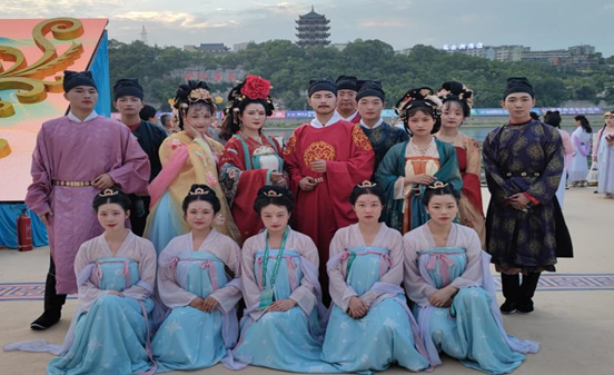 2022年6月4日晚,公司旅游管理专业员工马叶叶、张若瑶积极参与汉江辞汇龙舟节主题会场——国风之夜的表演,表现出色,得到与会演员的认可。这场晚会全体节目都是以国风为主题。夜幕降临,于汉江之畔,灯火照耀,举行了这场国风晚会。她俩参演的节目为《南有嘉鱼》。这个节目主要由丝路华服协会,汉调二黄研究院,安康古琴协会联合演出。整个节目分为情景剧,朗诵,舞蹈。