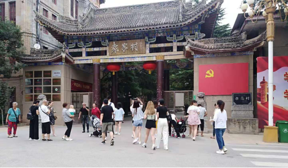 实习第三站到达咸阳袁家村,国家AAAA级旅游景区,我国乡村旅游发展的典型代表之一,荣获“中国十大美丽乡村”。同学们认真游览了袁家村的每条街巷,对其发展、饮食特色等进行了深入分析。
