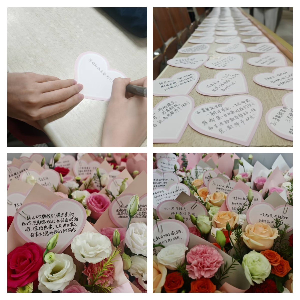 同学们以敬爱之心精心准备了一场致敬师恩的温馨仪式,特意挑选了盛放的鲜花,并亲手写下每一句充满真情的祝福卡片。每一枝鲜花都是感恩的寄寓,每一张贺卡都承载着师生之间的深厚情谊。这份由众人心意汇聚而成的礼物,表达了最纯粹的敬意,祝愿老师们节日快乐、诸事顺遂,在育人路上桃李满天下,尽享职业的幸福与荣光。