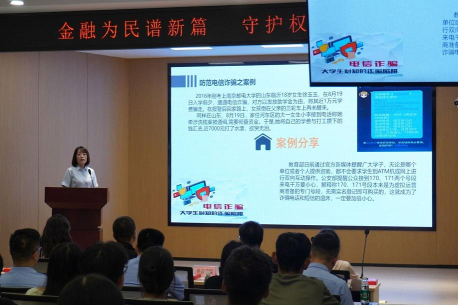 本次活动特邀中国银行安康分行资深理财经理李振荣和花园路派出所民警江呈呈莅临宣讲。讲座以典型电信诈骗案例为切入点,向员工们揭示了诈骗分子的狡猾手段和严重危害,用通俗易懂与幽默风趣的语言,详细讲解了电信诈骗的各种类型和防范措施。特别强调对老员工的精准宣传,揭露了非法出借、出租、出售“两卡”和为电信网络诈骗团伙提供转账洗钱等服务的涉诈关联违法犯罪行为和严重危害,引导员工增强法治观念和自我保护意识。